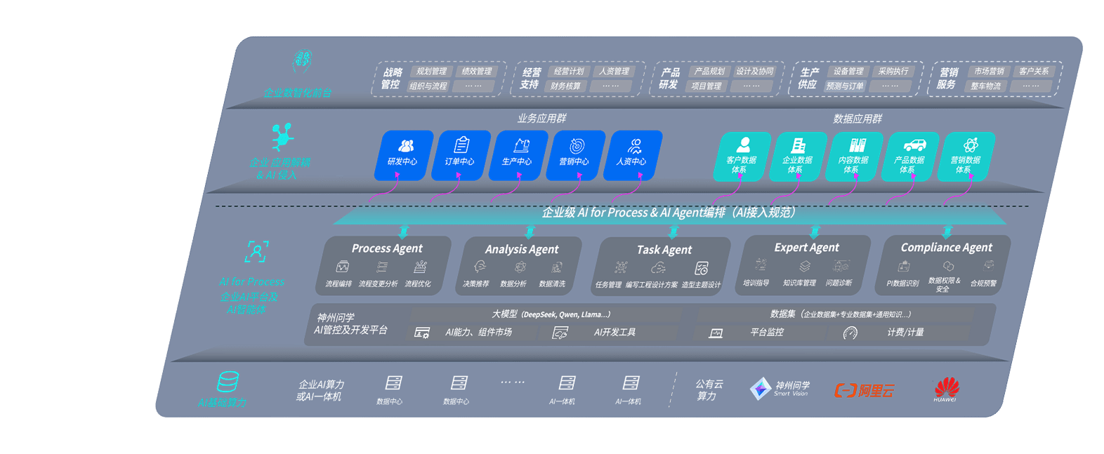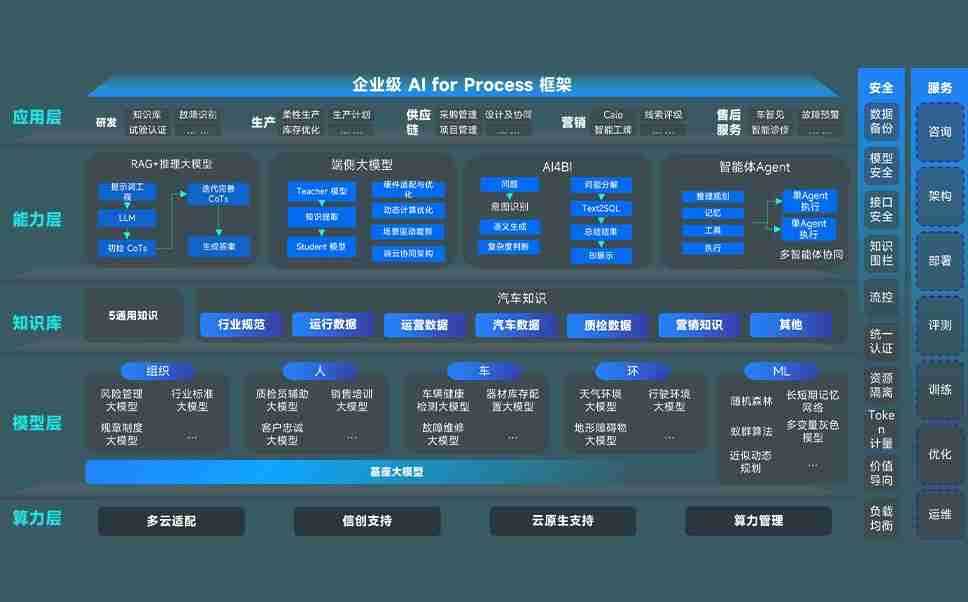 端到端的一站式AI工作空间深度融合了从企业战略规划到日常经营的全流程业务板块,,,定向解决车企内部领域多、、部门多、、链条长、、场景碎片化等难题,,,支持车企快速构建以AI为核心的生产力写作体系,,,,实现任务执行与AI能力的无缝集成与交互